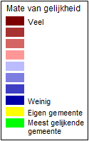 Per geselecteerde gemeente is aangegeven hoe groot de mate van gelijkenis is met andere gemeenten in Nederland, gebaseerd op 106 indicatoren. Zie onderaan voor een toelichting.