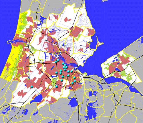 Opdrachtgever: Gemeente Amsterdam, EZ Research Voor het Regionaal Orgaan Amsterdam (ROA), bestaande uit gemeenten in het zuidelijk deel van de provincie Noord-Holland en Almere wordt momenteel een Regionaal-Economische Structuurvisie (RES) opgesteld. Ten behoeve daarvan is door Bureau Louter de ruimtelijke spreiding en recente groei van de werkgelegenheid in een twaalftal strategische clusters op de kaart gezet. Dat gebeurt via meer dan honderd kaartbeelden, op een ruimtelijk zeer gedetailleerd niveau. Naast werkgelegenheid wordt tevens ingegaan op de Bruto Toegevoegde Waarde, op de rol van het midden- en kleinbedrijf en op de ruimtelijke spreiding van de hoofdkantoren van de 500 grootste ondernemingen in Nederland. Als illustratie is hier de ruimtelijke spreiding en de recente groei van de werkgelegenheid in de strategische cluster ICT en nieuwe media weergegeven.