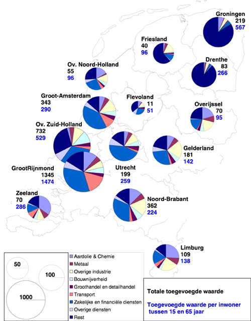 Opdrachtgever: Ministerie van Verkeer en Waterstaat, Directoraat-Generaal van het Goederenvervoer Onderzoek naar de omvang van zeehavengerelateerde activiteiten in het kader van de door het Ministerie van Verkeer en Waterstaat op te stellen Havenvisie (Zeehavens: ankers van de economie). Vastgesteld is de werkgelegenheid en de toegevoegde waarde in de Nederlandse zeehavengebieden, de ontwikkeling daarvan in de tijd en het relatief belang van zeehavengerelateerde activiteiten binnen hun regio. Daarbij zijn vier typen definities gehanteerd om het begrip zeehavengerelateerdheid af te bakenen. Eén daarvan is de bedrijvigheid die op zeehaventerreinen is gevestigd (zie de tabel). Die bedrijvigheid blijkt goed te zijn voor een Bruto Toegevoegde Waarde van 13.4 miljard Euro (exclusief uitstralingseffecten naar andere economische sectoren). Toegevoegde waarde (miljoenen Euros) bedrijvigheid op zeehaventerreinen, 2001